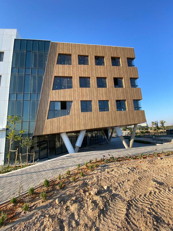 מבנה משרדים בעומר אשר ביצענו בו- קירות מסך מטריקס 50 לחצנים מרחף מקיר הבניין וקיר מסך סטרוקטורלי משולש , חיפויי אלומיניום 2 מ"מ , חיפוי HPL , חלונות מפרופילי 4750